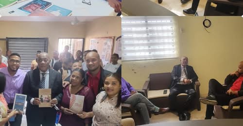 El alcalde Daireny Beltré recibió en su despacho a los reconocidos escritores Mateo Morrison, poeta y ensayista, y Héctor Santana, poeta y director de talleres literarios, con quienes acordó impulsar la creación de la biblioteca municipal de Jaquimeyes.